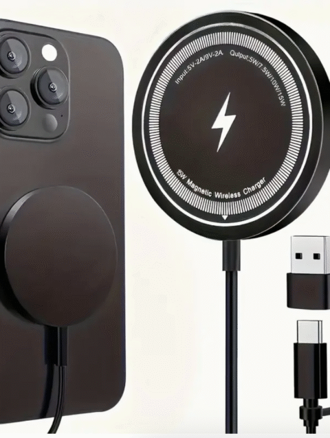 15W Fast-Charging Magnetic Wireless Charger Pad – Compatible with iPhone 16/15/14/13/12/11 (Pro/Max/Mini) | Dual Input USB-C/A | Intelligent Overcharge Protection | Sleek Black Design