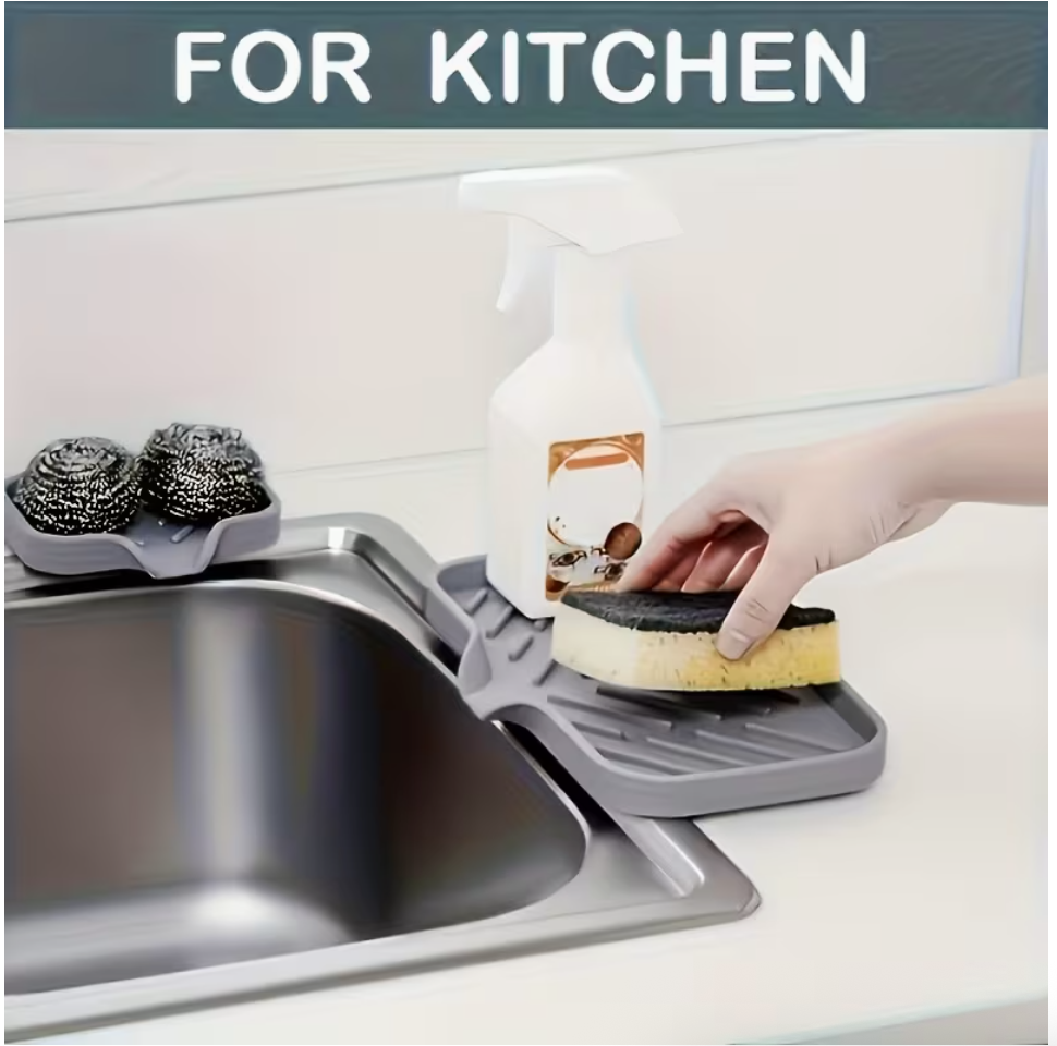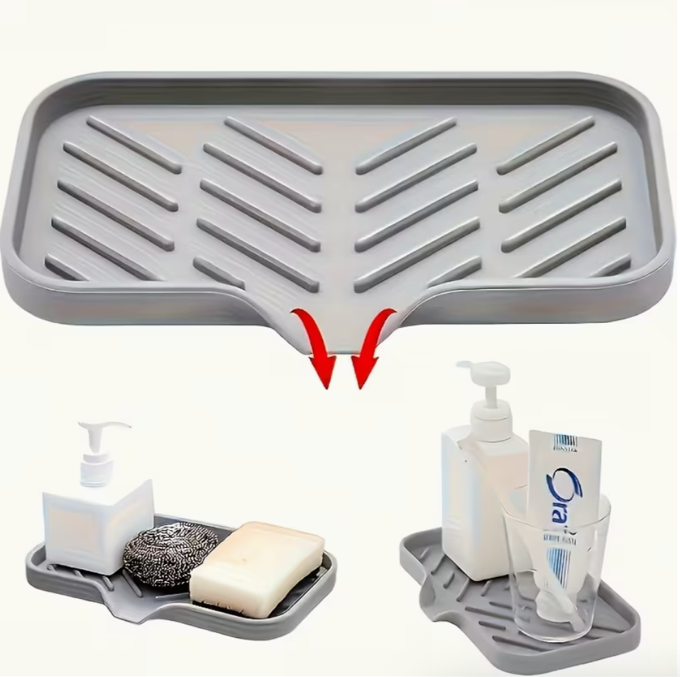 Keep your kitchen and bathroom neat, dry, and organized with this Silicone Kitchen Sink Tray with Drain Holes. Designed as a practical countertop cleaning mat, it provides a dedicated space for storing brushes, sponges, and soap while allowing water to drain quickly, helping prevent mess, mildew, and water stains.