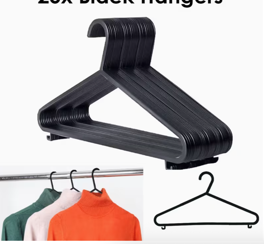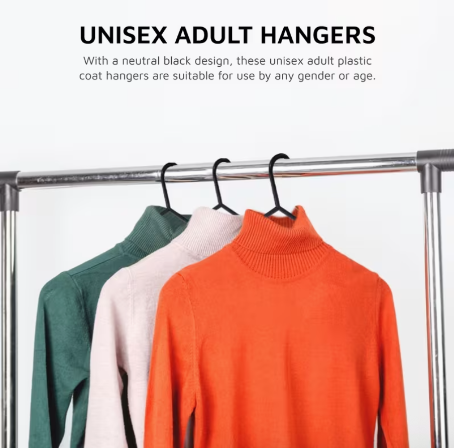 With a space-saving slim design and 37cm width, these hangers are ideal for adult clothing and help maximize closet space while maintaining a clean, uniform look. The classic black finish suits any wardrobe style, whether at home, in a dorm, rental property, or retail setting.