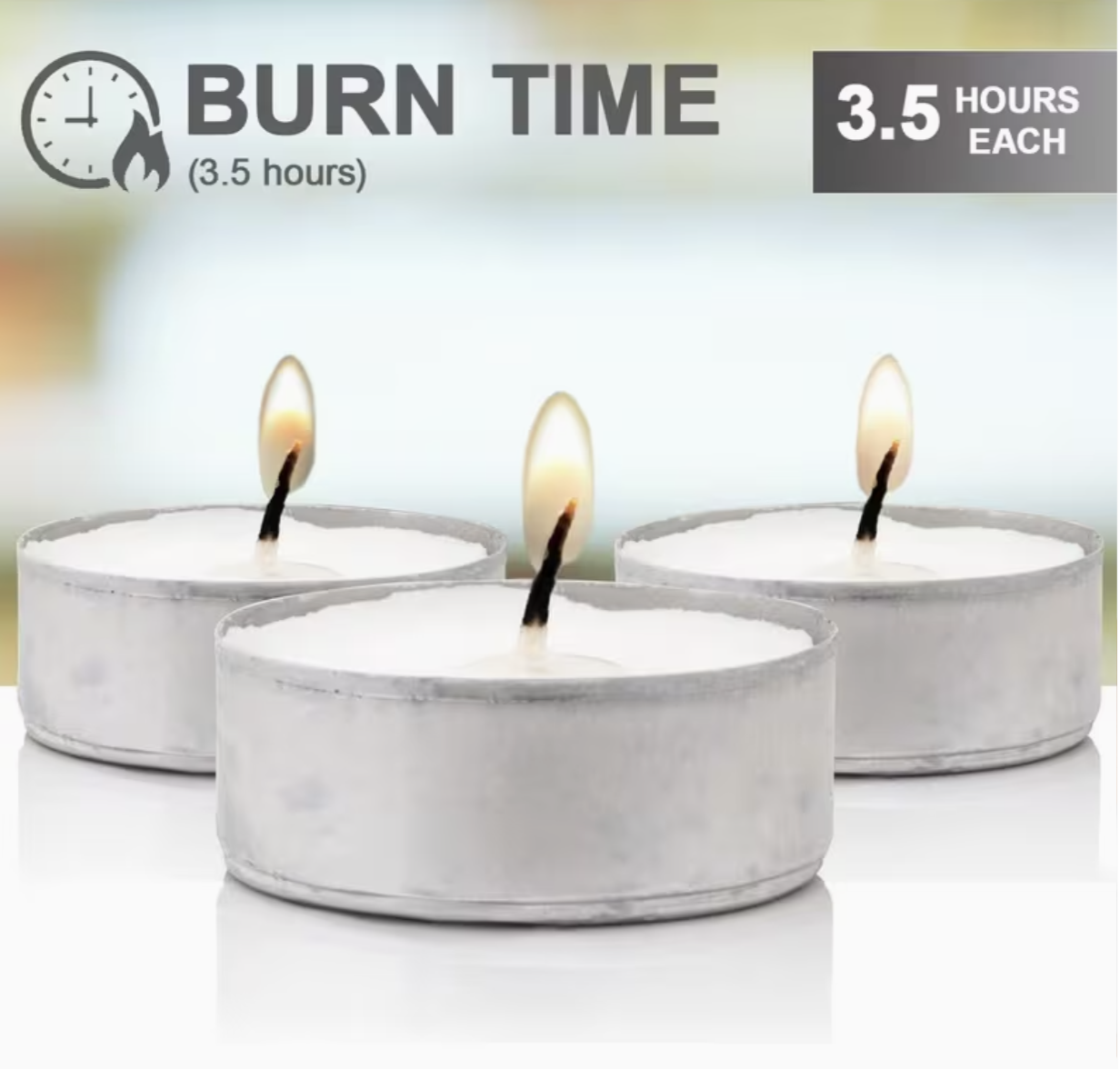 Burn Time: Approx. 3.5 Hours Each