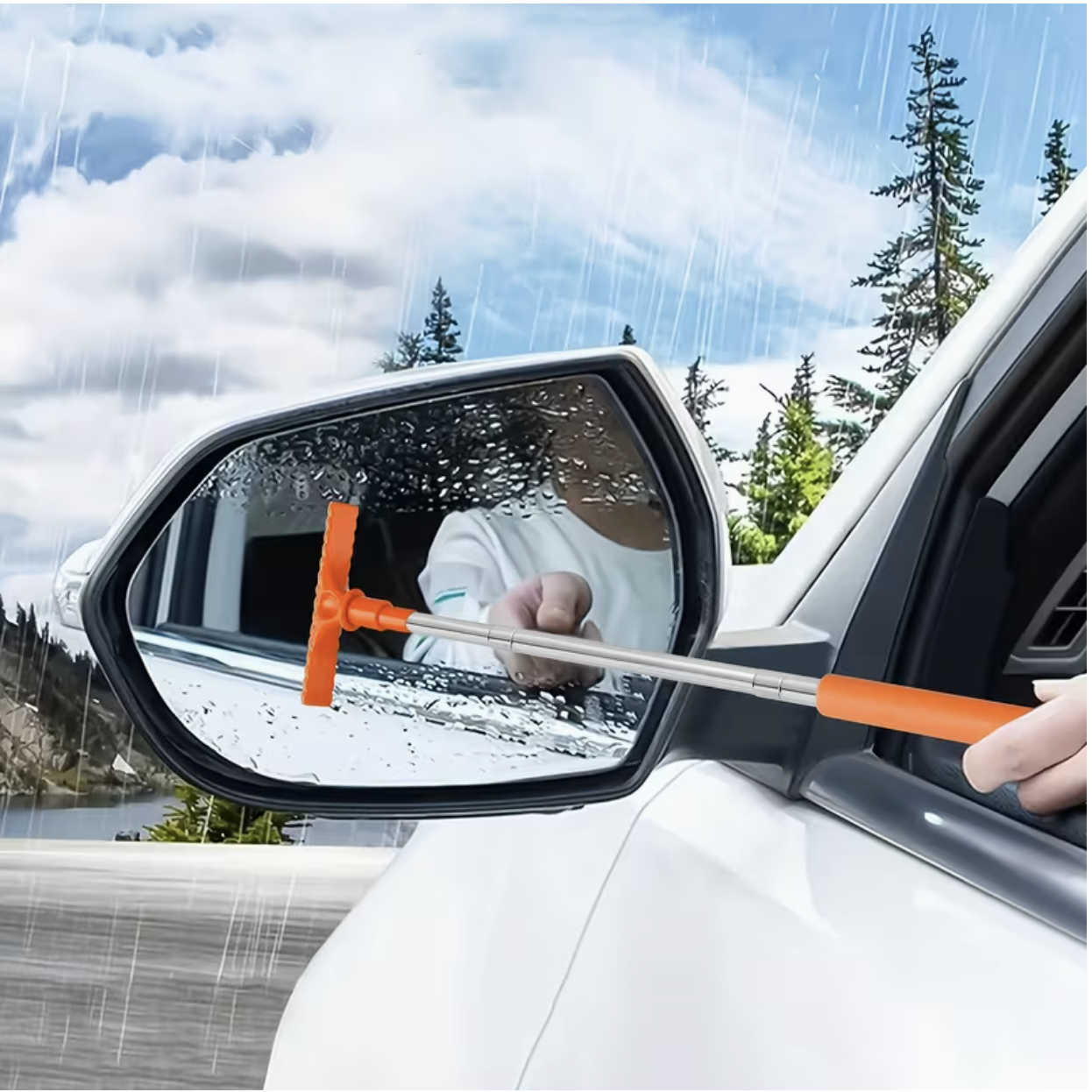 The 1pc Portable Water Scraper for Rearview Mirror is designed to remove water, fog, dirt, and grime from car mirrors and windows effortlessly. The built-in sponge absorbs moisture and loosens dirt, while the flexible scraper quickly clears excess water without scratching the glass. With its extendable brush handle, you can easily reach high or hard-to-access areas such as rear windows and side mirrors.