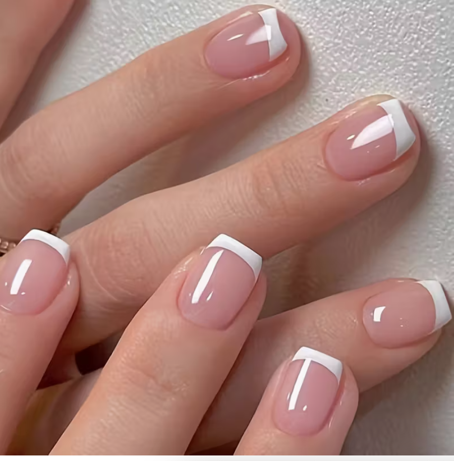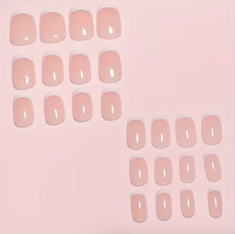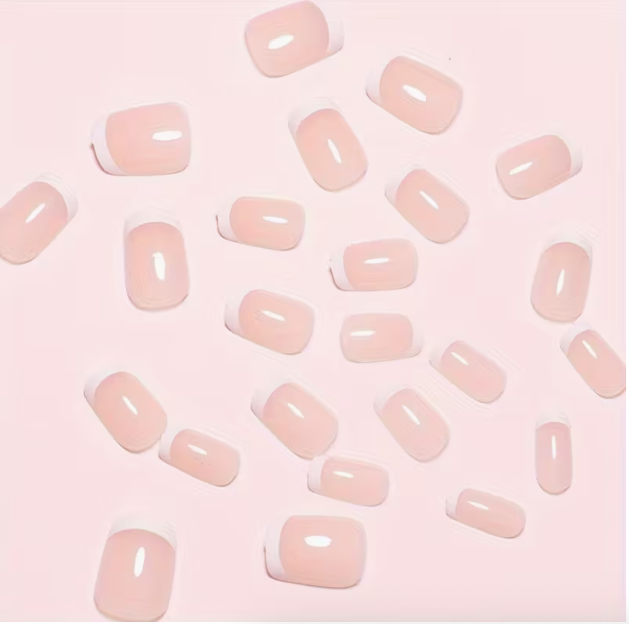 24pcs Luxurious Glossy Short Coffin Press-On Nails Reusable • Durable • Pink & White Colors • Easy Application • Long-Lasting Wear
