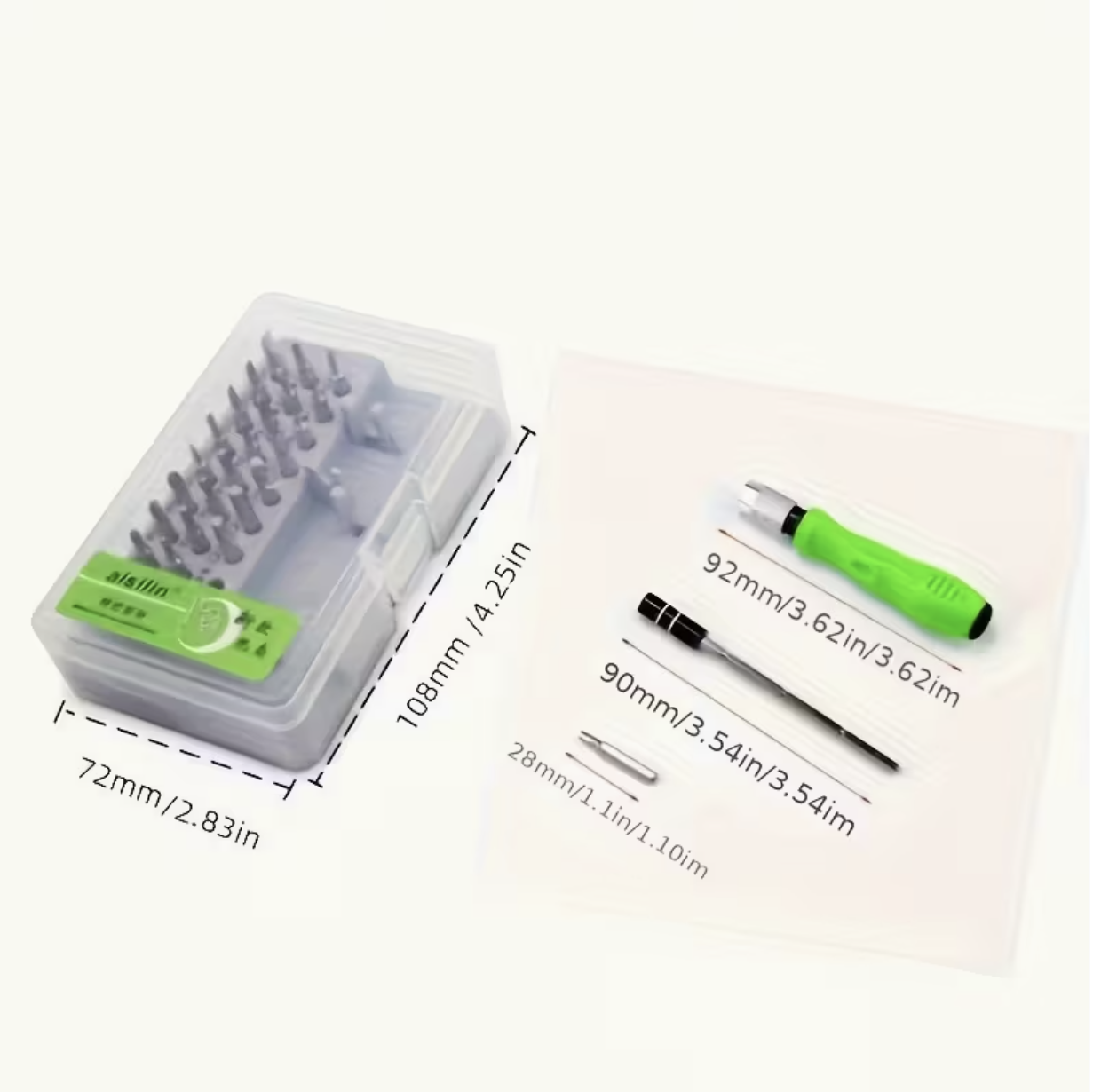 32-in-1 Complete Set: Includes a wide range of magnetic Phillips and flat-head bits for all types of precision repairs.