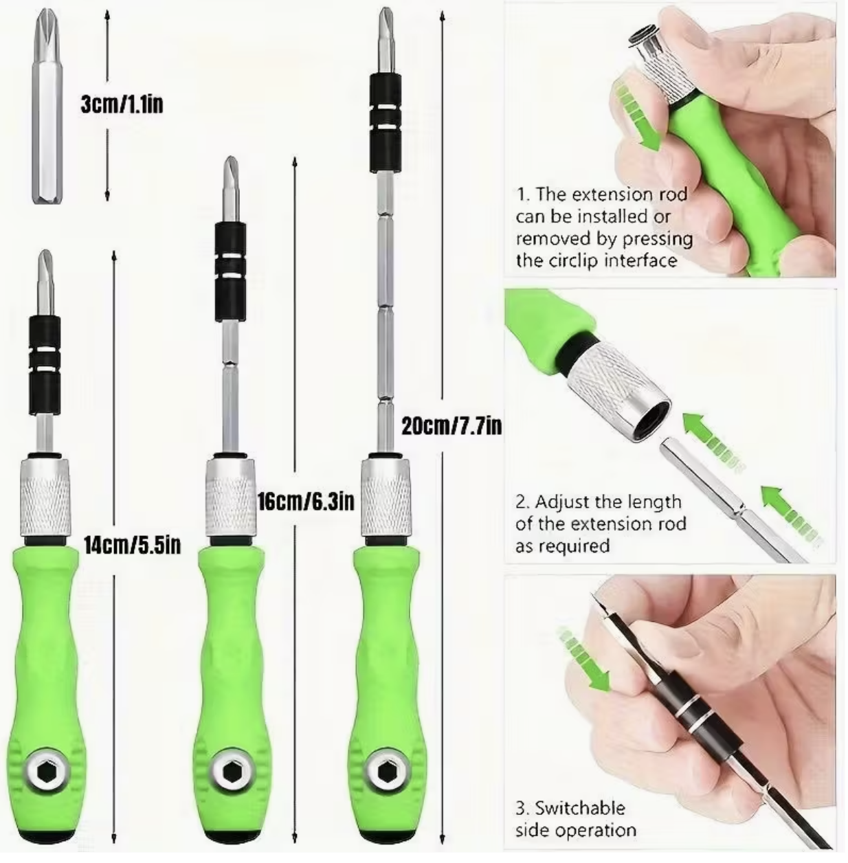 Magnetic Screwdriver Tips: Strong magnetic heads hold screws securely, making repairs easier and preventing dropped or lost parts.
