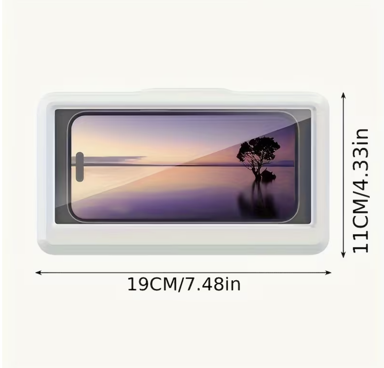 Keep your phone safe and accessible while showering with the 360° Rotating ABS Shower Phone Holder. Designed for use in bathrooms and toilets, this transparent holder easily attaches to plastic shower curtains, providing a secure and convenient spot for your phone during all-season use.