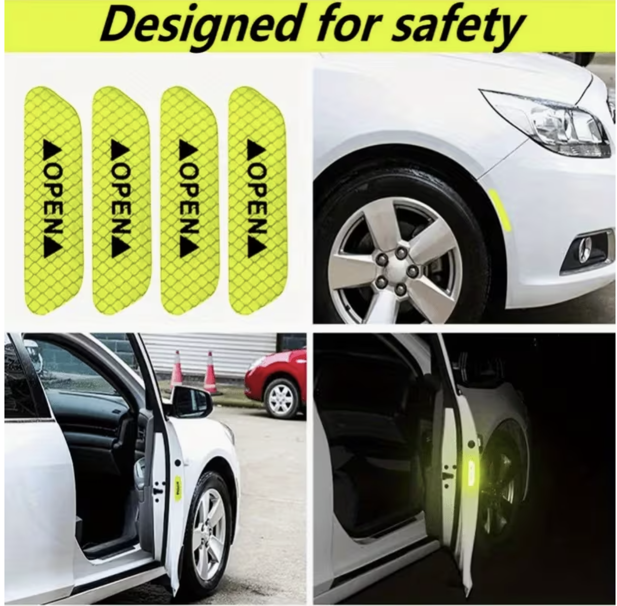 Upgrade your vehicle’s visibility and safety today with these 4PCS Reflective Car Door Warning Stickers 🚘✨