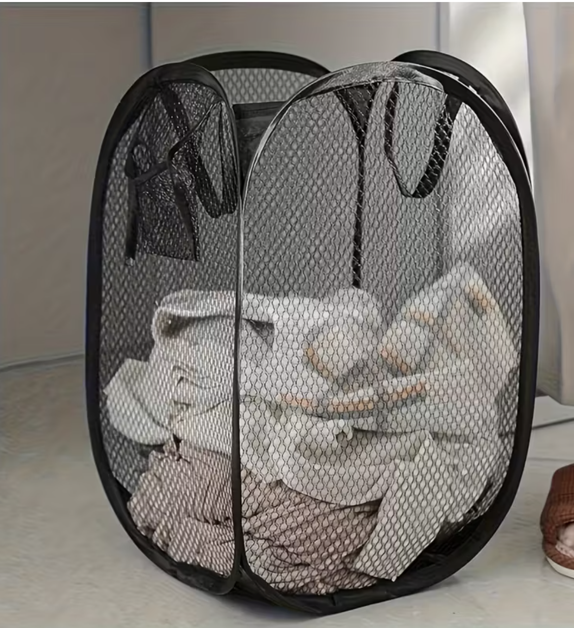 Keep your space neat and organised with this Foldable High-Capacity Mesh Laundry Basket, designed for everyday convenience and modern living. Made from durable yet lightweight polymer mesh, this rectangular laundry basket offers excellent ventilation to help reduce moisture and odours, keeping your clothes fresh between washes.
