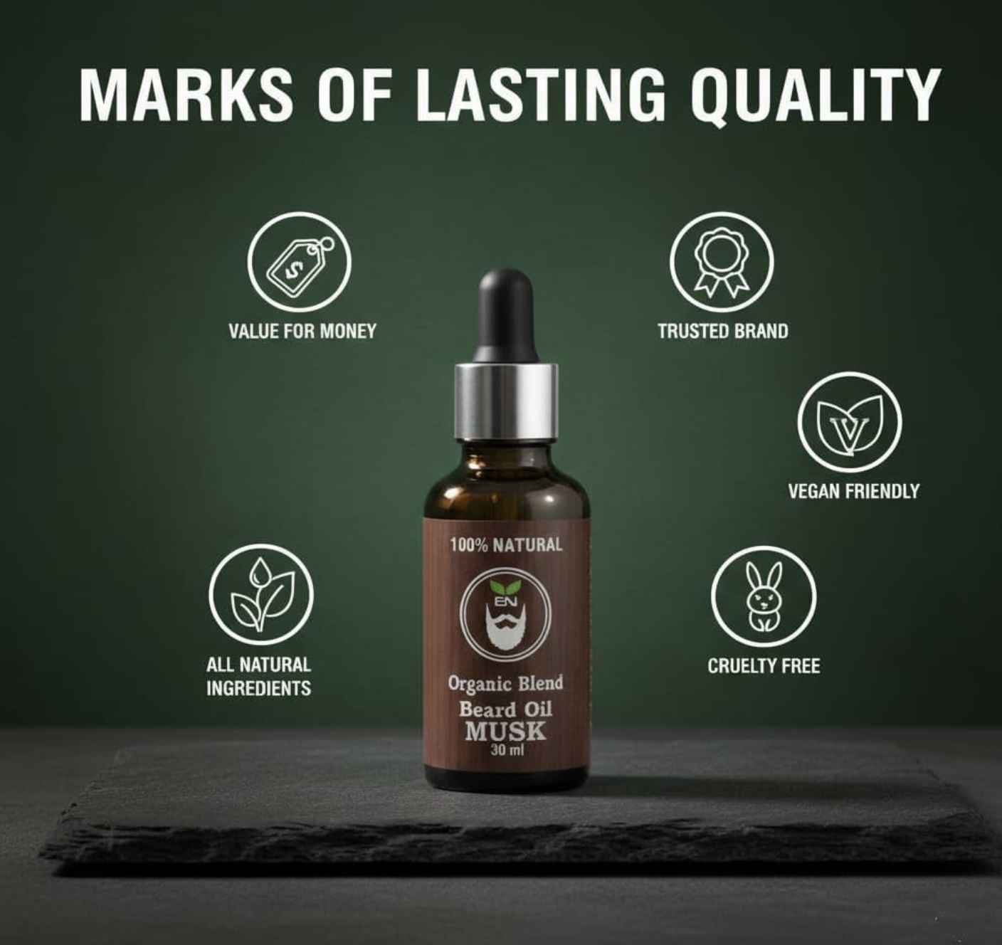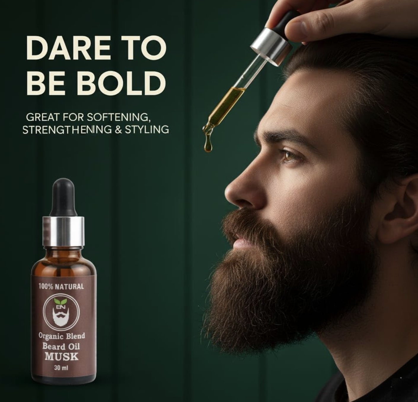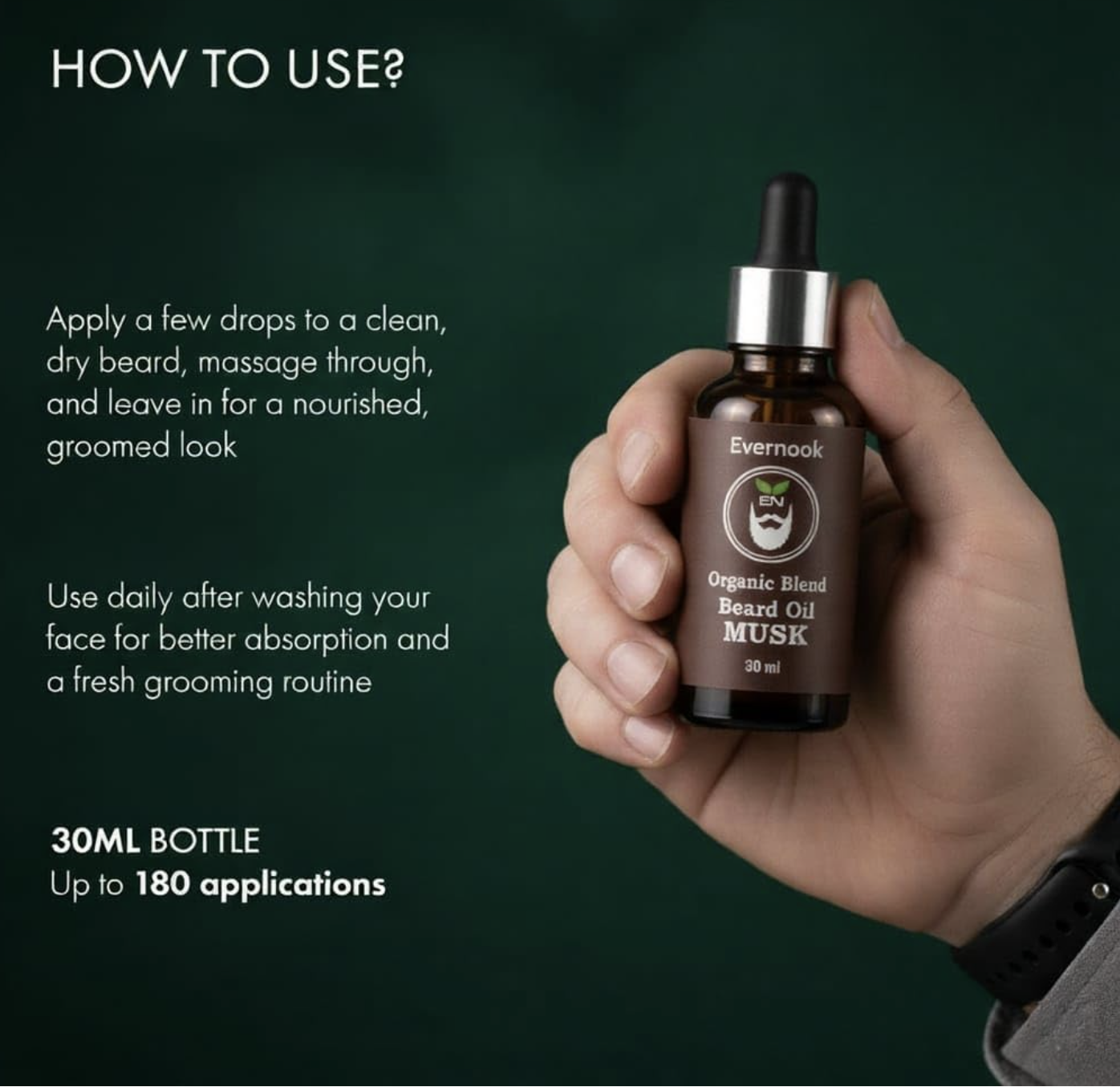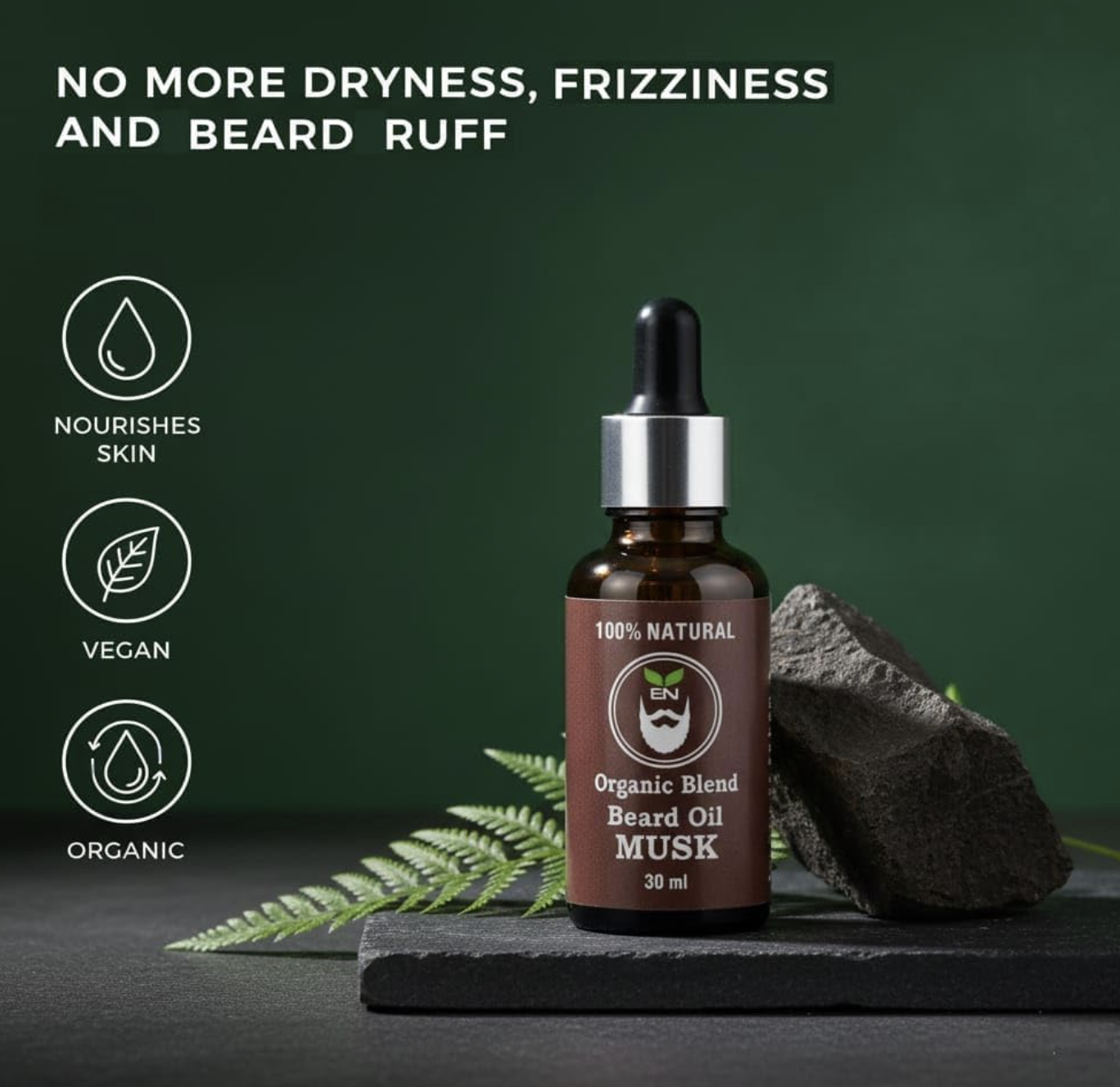 Organic Musk Beard Oil for Men – Beard Growth & Moisturising Formula with Argan, Jojoba & Castor Oils – Softens Facial Hair, Reduce Frizz – 30ml