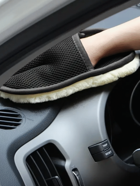 Keep your car spotless and shining with this Soft Microfiber Car Cleaning Glove, designed for effortless dust removal, polishing, and everyday car care. The ultra-plush microfiber lining traps dust and dirt without scratching, making it perfect for cleaning delicate paintwork, dashboards, mirrors, windows, and interior surfaces.