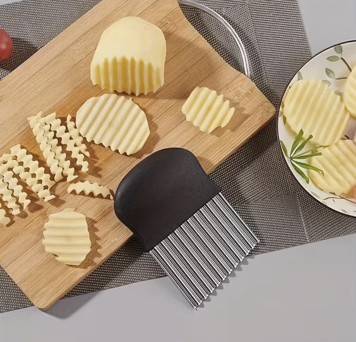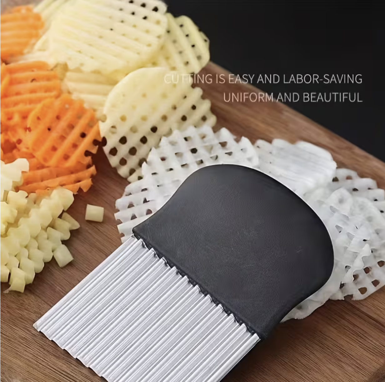 Upgrade your kitchen prep with the Stainless Steel Wavy Potato Slicer, a versatile and durable crinkle cutter designed to create beautifully wavy slices with ease. Perfect for potatoes, carrots, cucumbers, apples, and more, this multi-functional slicer helps you prepare eye-catching salads, snacks, and homemade French fries in seconds.