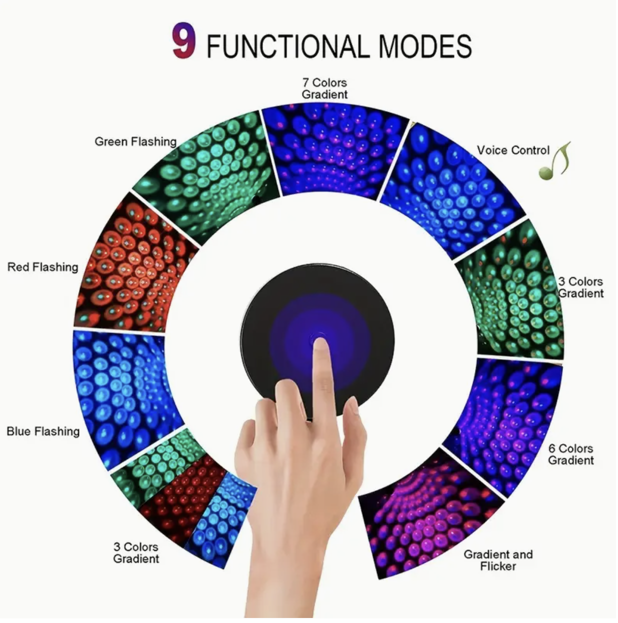 Creates a dazzling, colorful light show on your car ceiling and interior surfaces, perfect for parties or romantic vibes.
